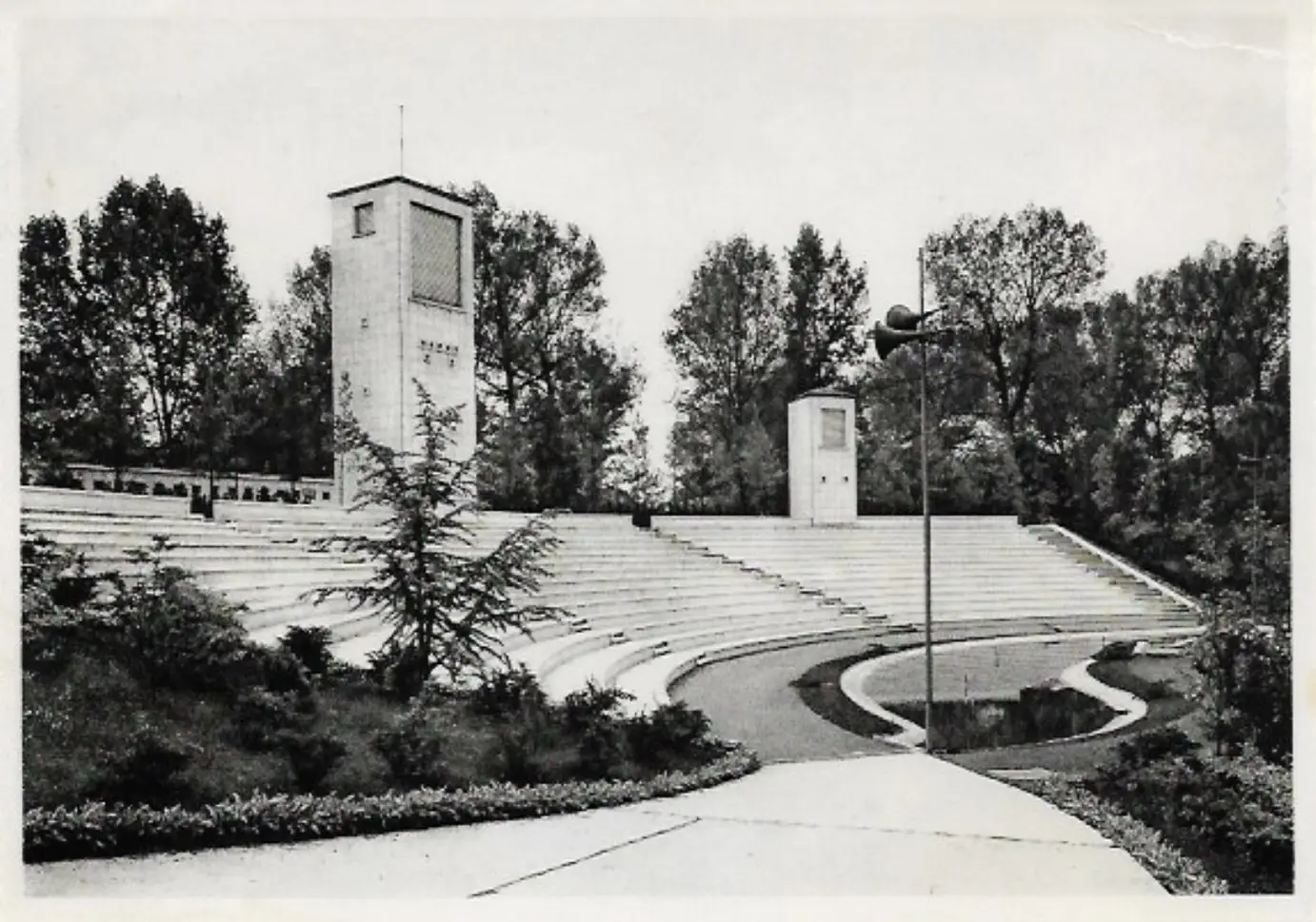Voor het Openluchttheater in het Rivierenhof werd aanvankelijk een ontwerp gevraagd aan een aannemersfirma. Het ontwerp voldeed niet aan de verwachtingen en men vroeg provinciaal bouwmeester Jozef Schellekens om de plannen te herbekijken. Het ont- werp waarmee hij voor de dag kwam was subliem. Maar omwille van budgettaire en oorlogsredenen werd er pas in 1951 gestart met de bouw. Het eigenlijke amfitheater wordt voorafgegaan door een monumentaal ereplein omgeven door strakke zuilen. In het midden staat een sculptuur van Pol Van Esbroeck die de toneelkunst voorstelt. Aan de rechterzijde wordt het plein afgesloten door een gebouw met receptie, dienstlokalen en artiestenloges. Het decormagazijn vormt de achtergevel die werd opengewerkt met kleine ramen in gekleurd vensterglas. ’s Avonds geven die kleine vensters een extra decoratief effect. Het openluchttheater biedt plaats aan 1.350 toeschouwers en is ook voorzien van 3 gigantische lichttorens met daarin de voor die tijd modernste technieken voor filmprojectie en belichting. In juni 1953 werd het theater geopend en werd het meteen uiterst lovend onthaald door pers en publiek. De monumentale constructie werd perfect geïntegreerd in de natuurlijke schoonheid van het park Rivierenhof.
